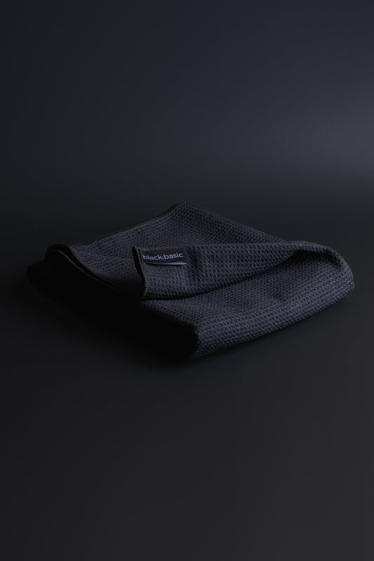 Black microfibre bath towel in a simple minimalist design. The price is for one towel. Each towel measures 90x150cm.